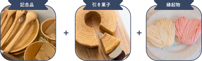 記念品・引き菓子・縁起物をお選びいただいた場合、同梱にてゲスト様へお送りさせていただきます。