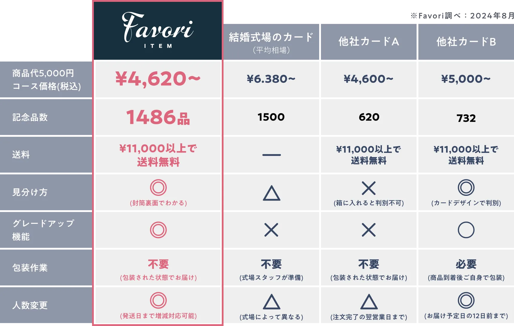 ※Favori単価:両親・親族、上司・先輩(¥8,400)、同僚・友人(¥4,620)