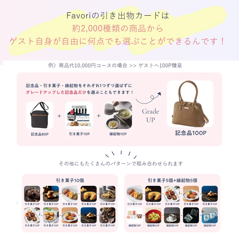 Favori限定引き出物カードは、新郎新婦様もゲストも嬉しい魅力がたくさん!