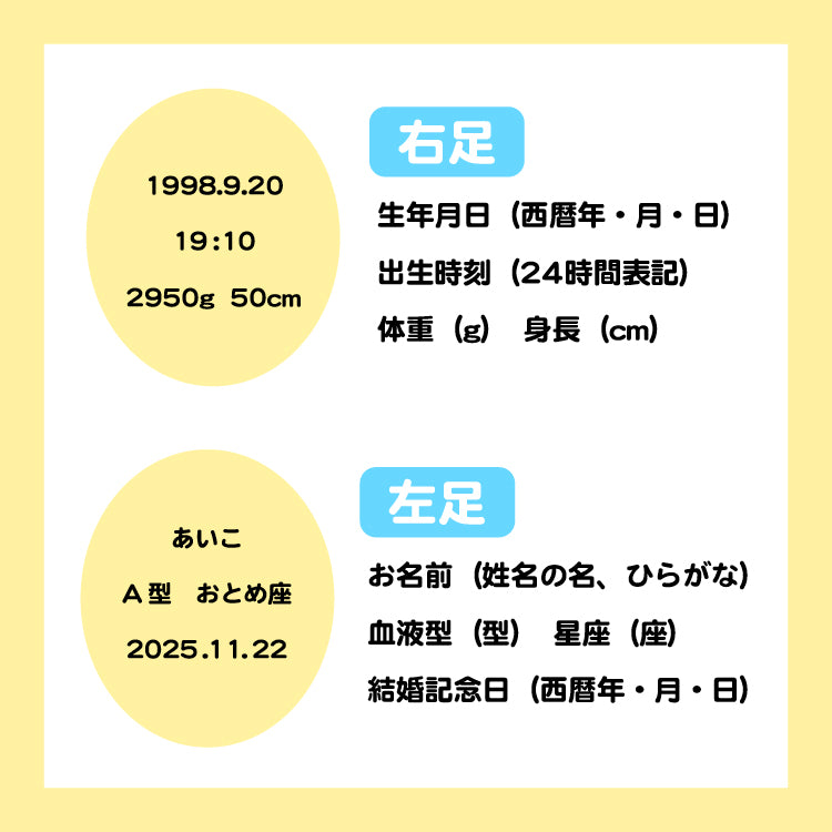 ※足裏に刺繍をお入れします。項目の変更はお受けできません。