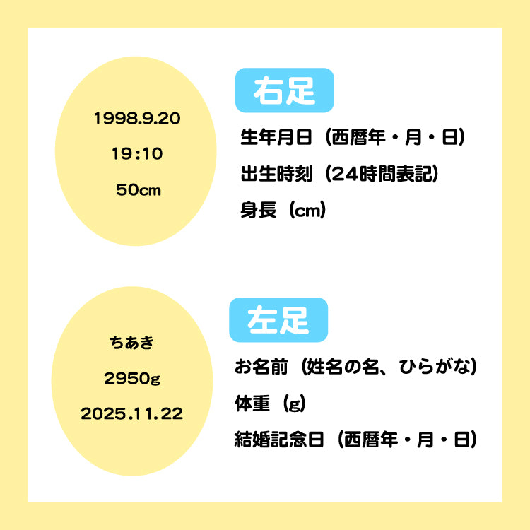 ※足裏に刺繍をお入れします。項目の変更はお受けできません。